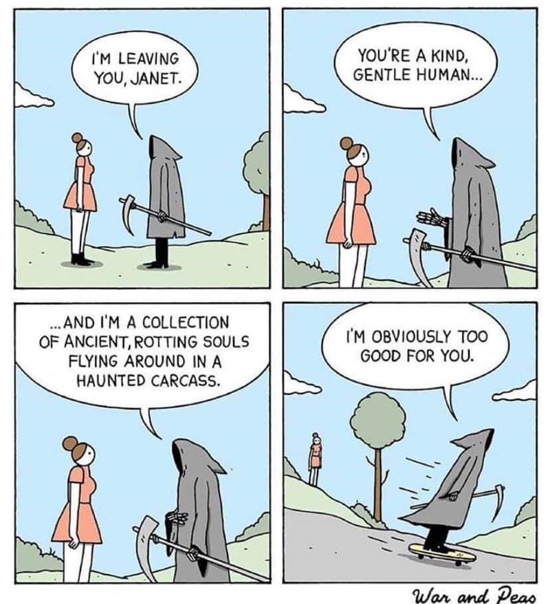 Death comic meme. Following its announcement at electronic entertainment expo e3 2016 conference the game was widely discussed for being the first production by kojima since his controversial departure from the japanese entertainment company konami. Ryuk is a shinigami a death god with a book that can kill anyone in any way imaginable and he just tosses the book out into the human world and watches what happens. Die kleinen bildchen bringen uns und unsere freunde täglich zum lachen und sind mittlerweile für unsere generation unverzichtbar geworden. This meme known as what the hell are you. Bei memes auf denen privatpersonen zu sehen sind greift zusätzlich noch das recht am eigenen bild wodurch eine veröffentlichung schwerwiegender ist. Meme status confirmed type. Was hinter dem internetphänomen steckt erläutern wir euch hier.